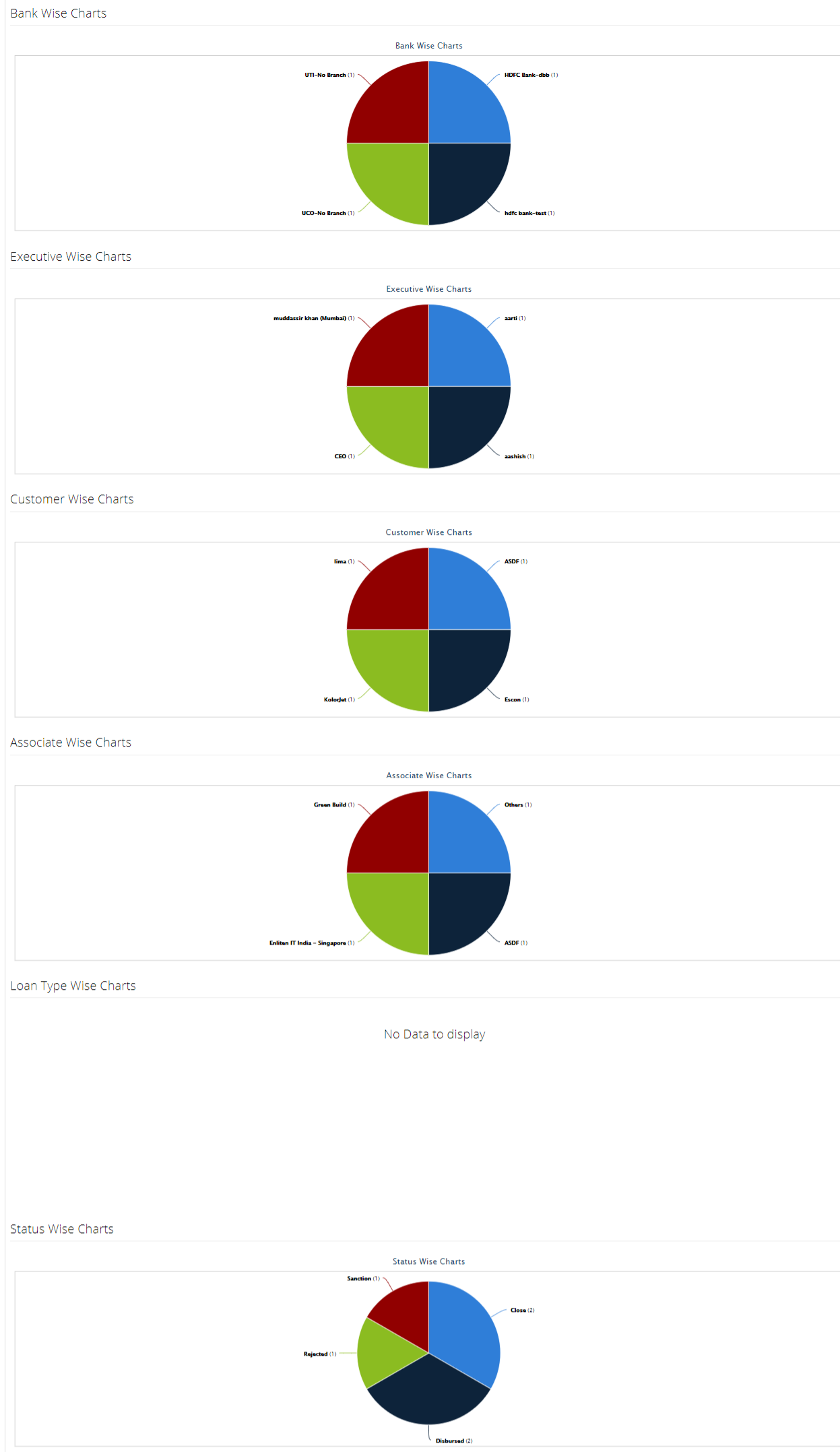 - Executive Wise Charts: It represents the chart by the executive, who is controlling the loan processes of that file.